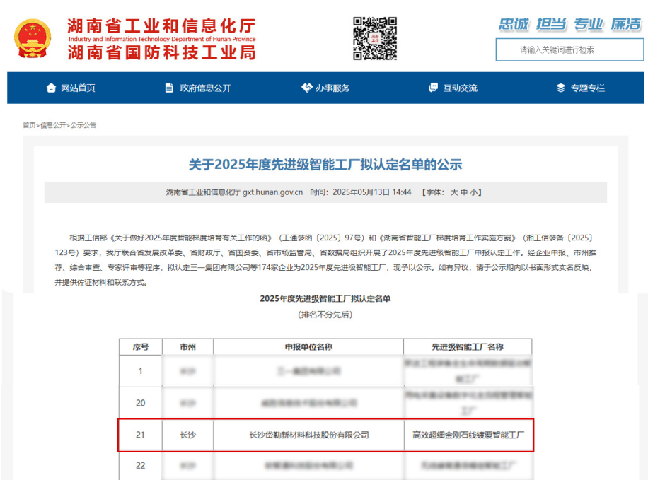 5月13日,湖南省工信廳發(fā)布《關于2025年度先進級智能工廠擬認定名單的公示》,湖南湘江新區(qū)八家企業(yè)榮耀登榜,長沙岱勒新···...